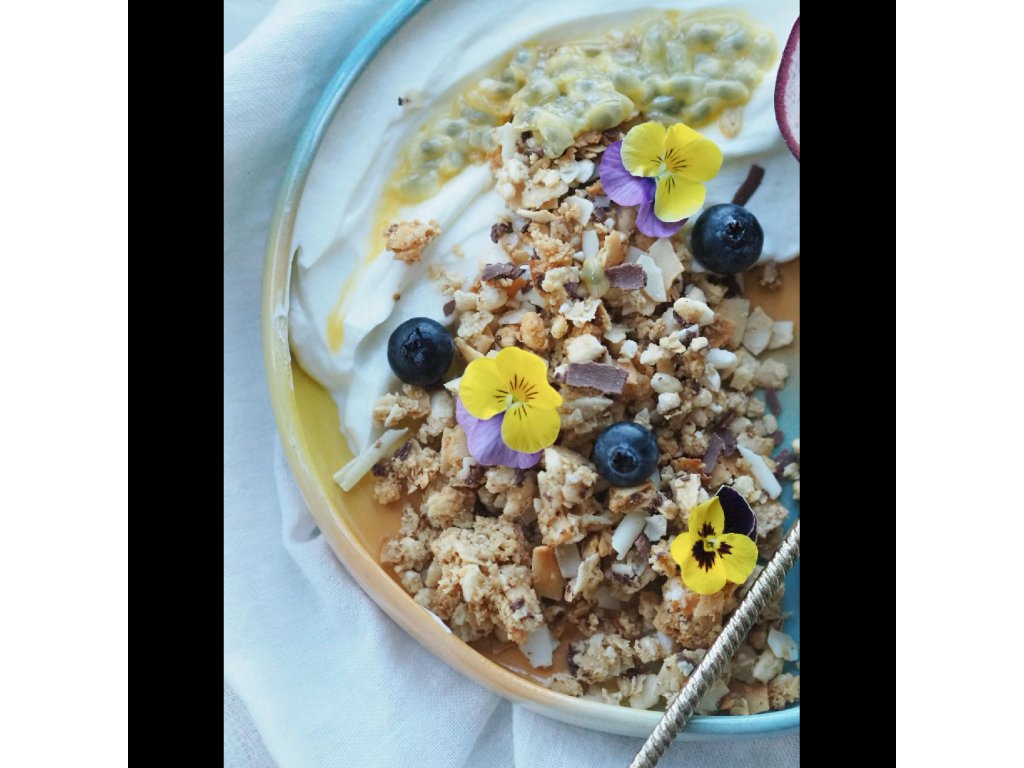 Složení: Bezlepkové instantní OVESNÉ vločky, kokosové plátky, belgická čokoláda 12% (hořká, mléčná, bílá v různém poměru) (cukr, kakaová hmota, kakaové máslo, sušené plnotučné a odstředěné MLÉKO, sušená SYROVÁTKA, LAKTÓZA, přírodní vanilkové aroma, emulgátor: slunečnicový lecitin), med, třtinový cukr, jablečno - višňový koncetrát (jablečný koncentrát, višňový koncentrát), pufovaná rýže, řepkový olej, lyofilizovaný banán3%, kakaové máslo